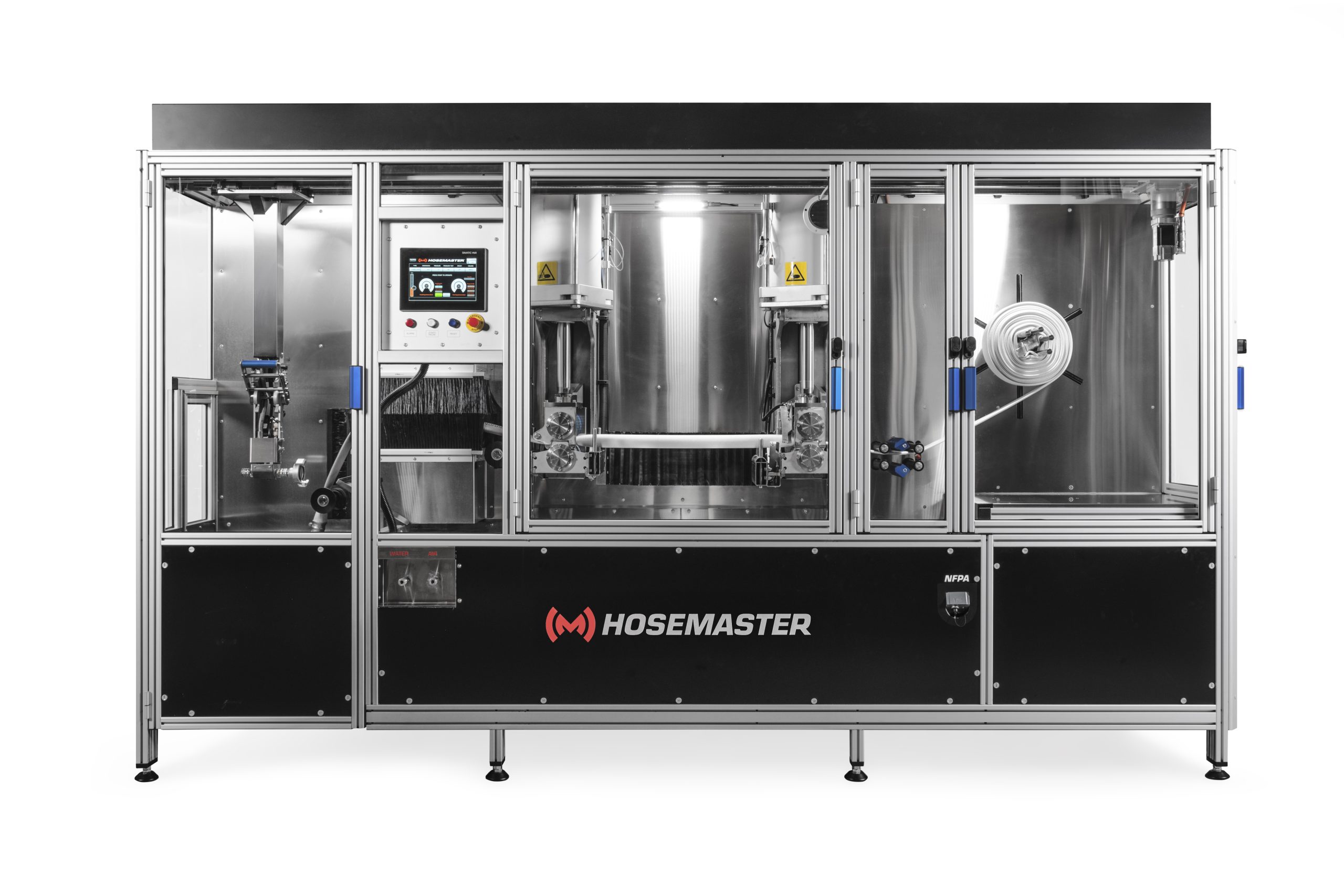 Day-to-day operations at fire stations demand well-managed processes and the highest possible performance. Traditionally, equipment maintenance after a call has also been both time-consuming and physically demanding. The HosemasterTM fire hose washer has been designed to automate a key process by bringing hose washing, pressure testing, and reeling together in a single fire hose washer. The washer cleans and inspects hoses in a single cycle, supporting regular maintenance intervals and a clean station. The functional features and the final outcome must also meet NFPA standards, and the work itself must be safe.